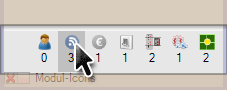 Zu den Modulnamen werden die Symbole angezeigt. Sie können dabei bestimmen, ob sie das jeweilige Modul-Icon sehen wollen (unten die Option "Modul-Icons") oder die Typensymbole, was gelegtentlich übersichtlicher sein kann, da Sie so schneller erkennen können was ein Signal oder eine Progression ist.